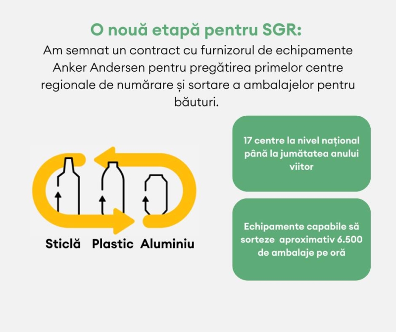 Sistemului național de Garanție-Returnare (SGR) intră într-o nouă etapă de dezvoltare, odată cu semnarea de către RetuRO, compania responsabilă de gestionarea SGR în România, a contractului de achiziție a echipamentelor pentru centrele regionale cu Anker Andersen A/S, lider de piață în sisteme de numărare și sortare de înaltă performanță, oferind o gamă diversificată de produse pentru piețele și țările care au implementat un sistem național de garanție-returnare.